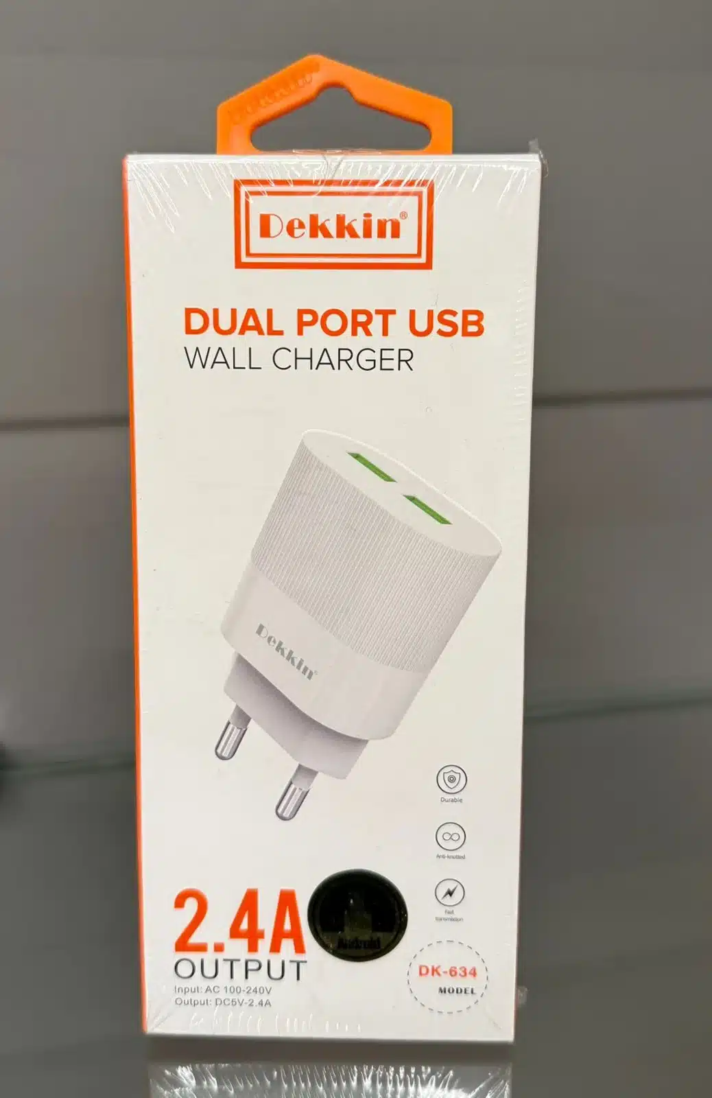 This item is a Dekkin DK-634 dual port USB wall charger for Android.